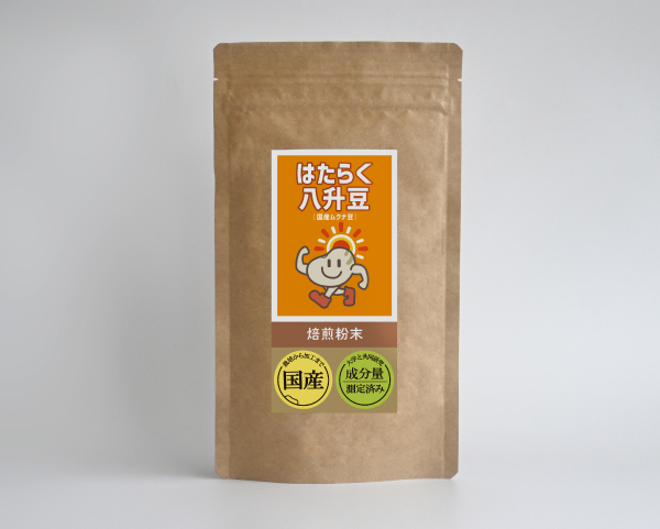 「完熟豆」のみを使用。樹上で十分に熟した国産100%の八升豆を、丁寧に乾燥、焙煎し、もっとも自然な形でお届けできるよう粉末状にしております。焙煎の香ばしいきな粉のような細かい粉末です。